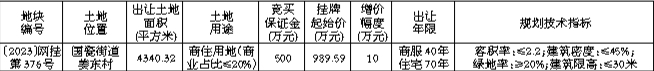 三、挂牌起始价格包括建设用地使用权出让金,不包括交易过程中应缴纳的税费。