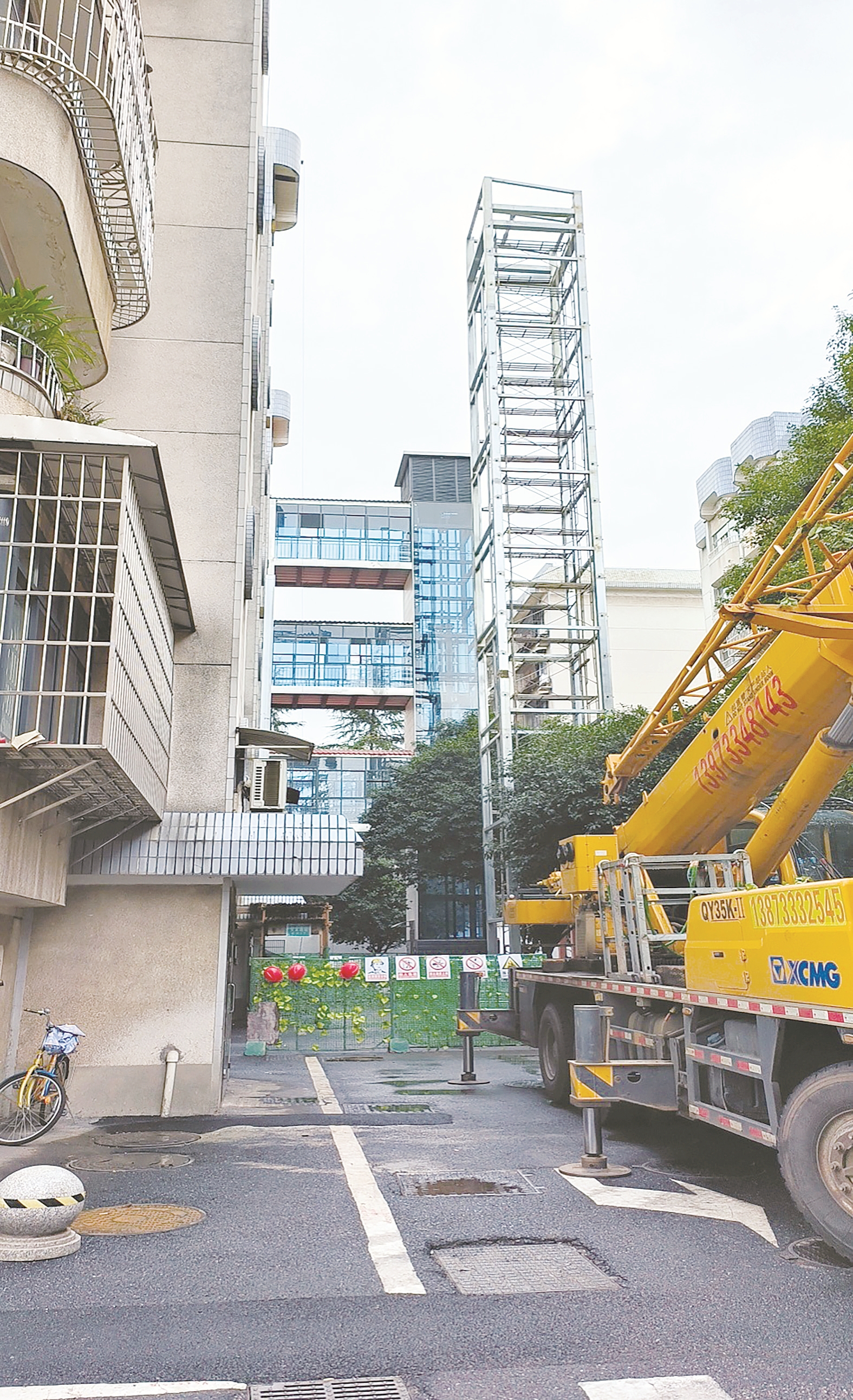 天台路人民银行小区,电梯加装工程按下“加速键”。 通讯员 供图