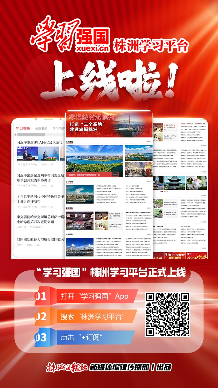 心妹坨:祝贺“学习强国”株洲学习平台正式上线,赶快订阅起来。让株洲好声音传播得更远,把株洲城市名片擦得更亮。