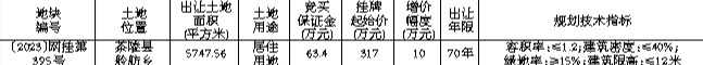 株洲市国有建设用地使用权网上挂牌出让公告 〔2023〕网挂第395号