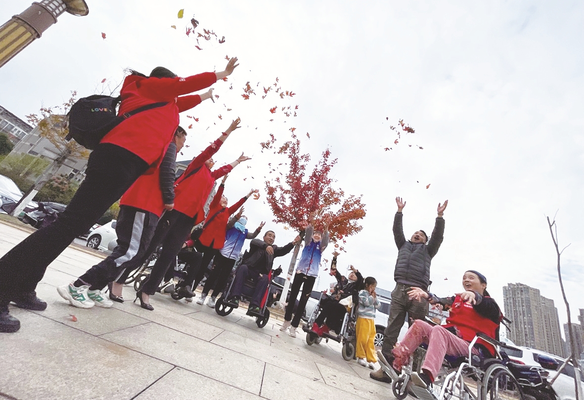 11月18日下午,在天元区残联、泰山路街道、泰园社区、市益民社会工作服务中心工作人员及爱心志愿者的组织下,来自城市五区的部分重度残友伴随“幸福车站无障碍出行”助残活动的开展,漫游神农城。大家在神农大道上赏丹枫捡枫叶享受冬日暖阳,在神农湖畔学习演绎《防溺水手语舞》增强应急技能,灿烂的红枫辉映着残友们开心的笑脸。