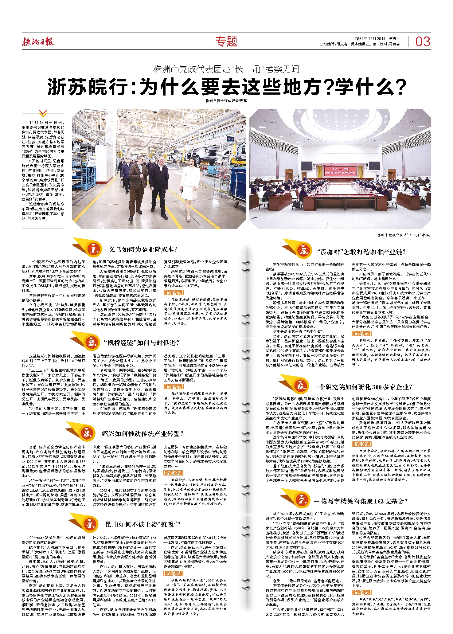 11月13日至16日,由市委书记曹慧泉率领的株洲市党政代表团,带着问题、伴着思索,先后奔赴浙江、江苏、安徽3省4地学习考察,探寻高质量发展“密码”,为全市经济社会高质量发展蓄势赋能。