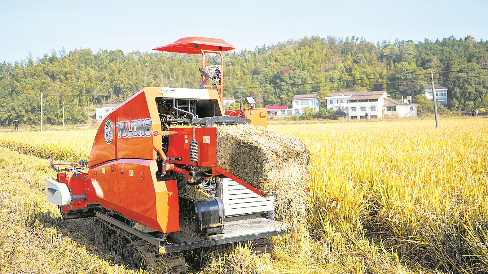 11月17日,渌口区组织开展农作物秸秆综合利用现场观摩会,在淦田镇淦田村,刚刚收割完的晚稻田里,一根根秸秆被“吞”进打捆机,在完成压实、打包等工序后,又被“吐”出来,变成方形草捆整齐地摆放在田里,等待装车。