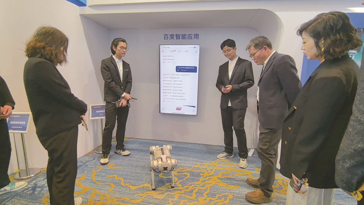 大赛成果展上,参展人员正在观看四足机器人。 株洲日报全媒体记者/高晓燕 摄