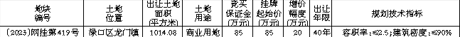 株洲市国有建设用地使用权网上挂牌出让公告 〔2023〕网挂第419号