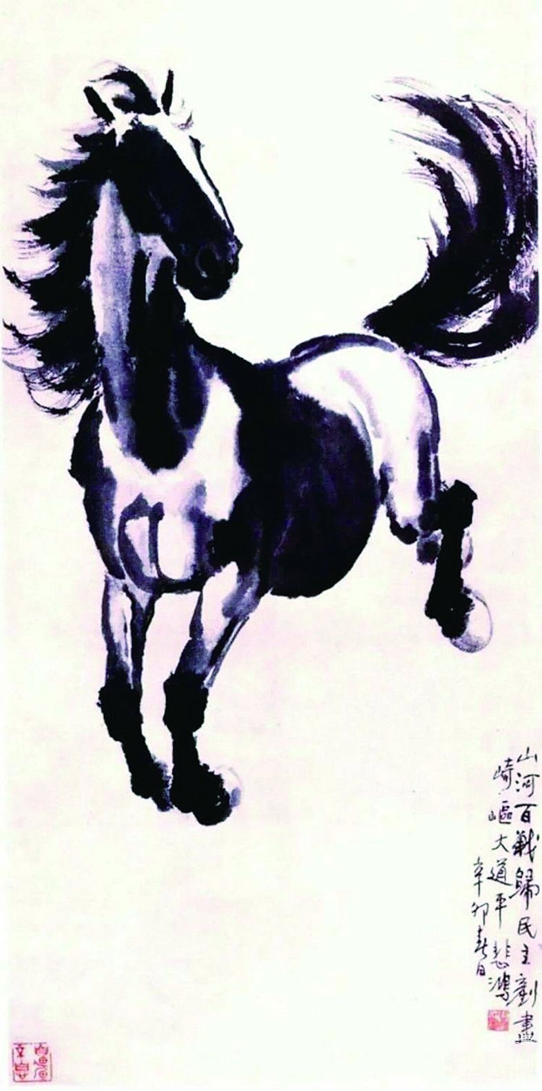 徐悲鸿率先画《奔马》,寄赠给远在朝鲜战场上浴血奋战的中国人民志愿军战士,他在附信中写道:“我以能为你们服务而感到无限光荣。此致,崇高的敬礼!”以真挚的感情向志愿军战士表达发自肺腑的崇高敬意。