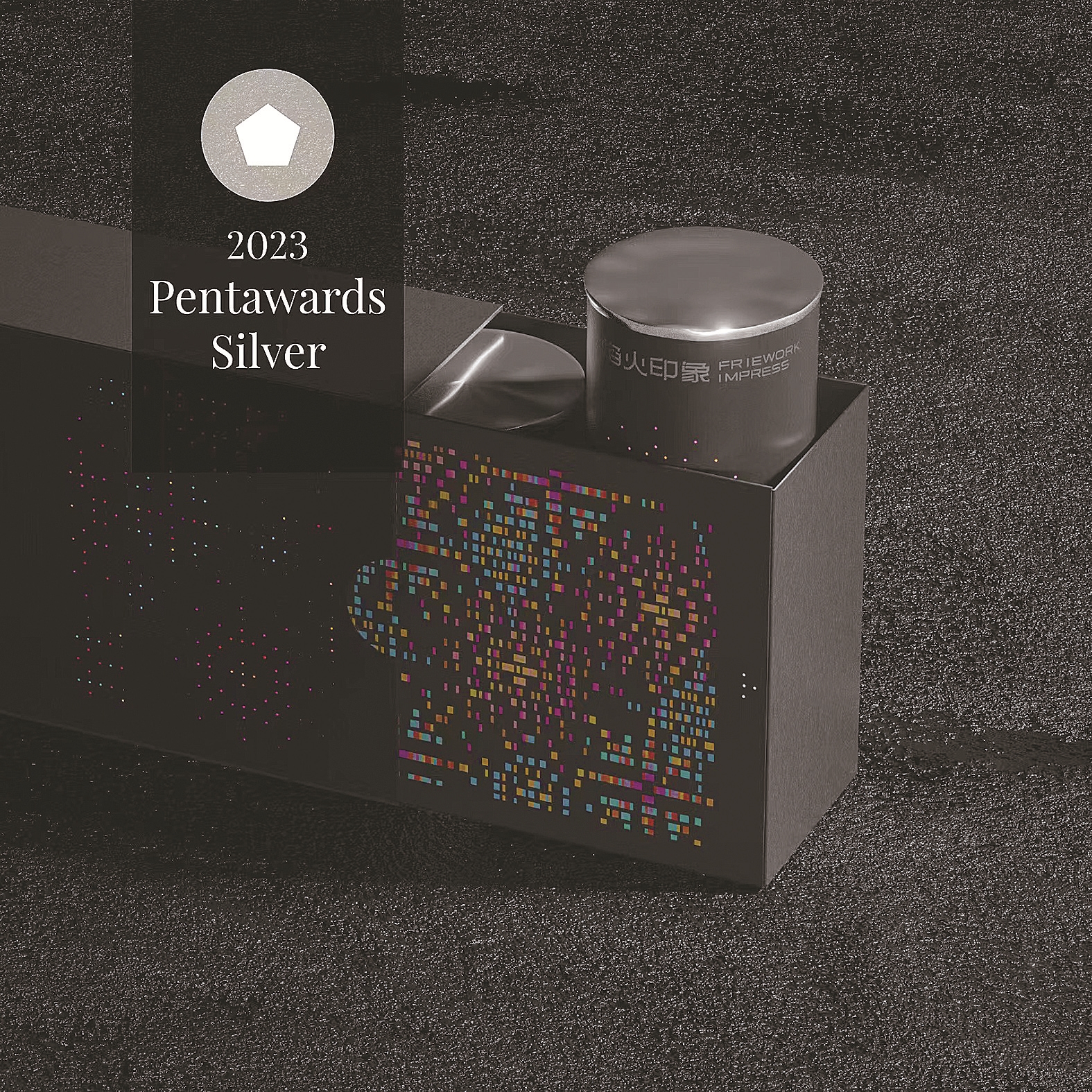 “烟火印象”主打外包装盒设计。黑色的抽屉形包装,外侧有星星点点的烟花图案,“点睛之笔”是,当你拉开盒子,原本黯淡无光的图案宛如被点燃,随之闪亮,进一步绽放。