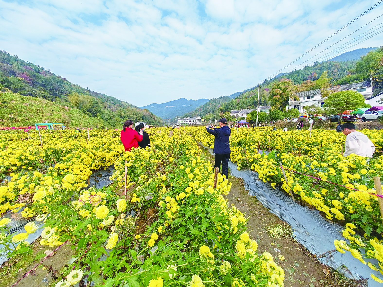 • 11月26日,初冬暖阳醉人,醴陵市枫林镇隆兴坳村耿飚故居前,皇菊盛开,来自各地的游客车辆排成长龙。游客们在花田里拍照打卡,在小广场上的摊点前品尝传统特色小吃,红色旅游与农业观光体验融为一体。