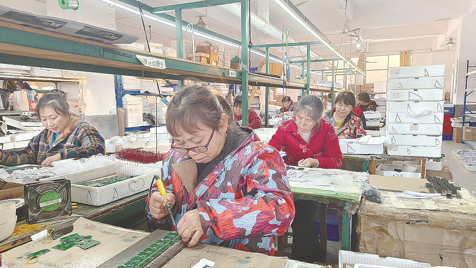 焊接、检查……47岁的张聪艳熟练地在流水线前忙碌着。