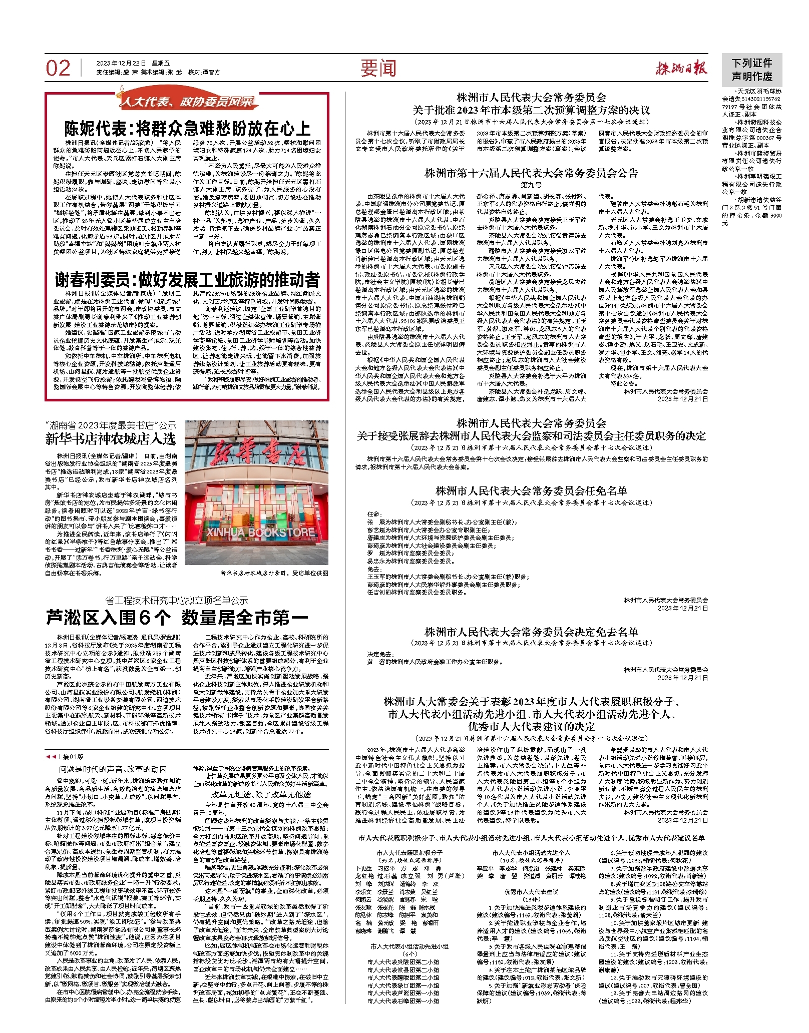 株洲市人民代表大会常务委员会 关于批准2023年市本级第二次预算调整方案的决议
