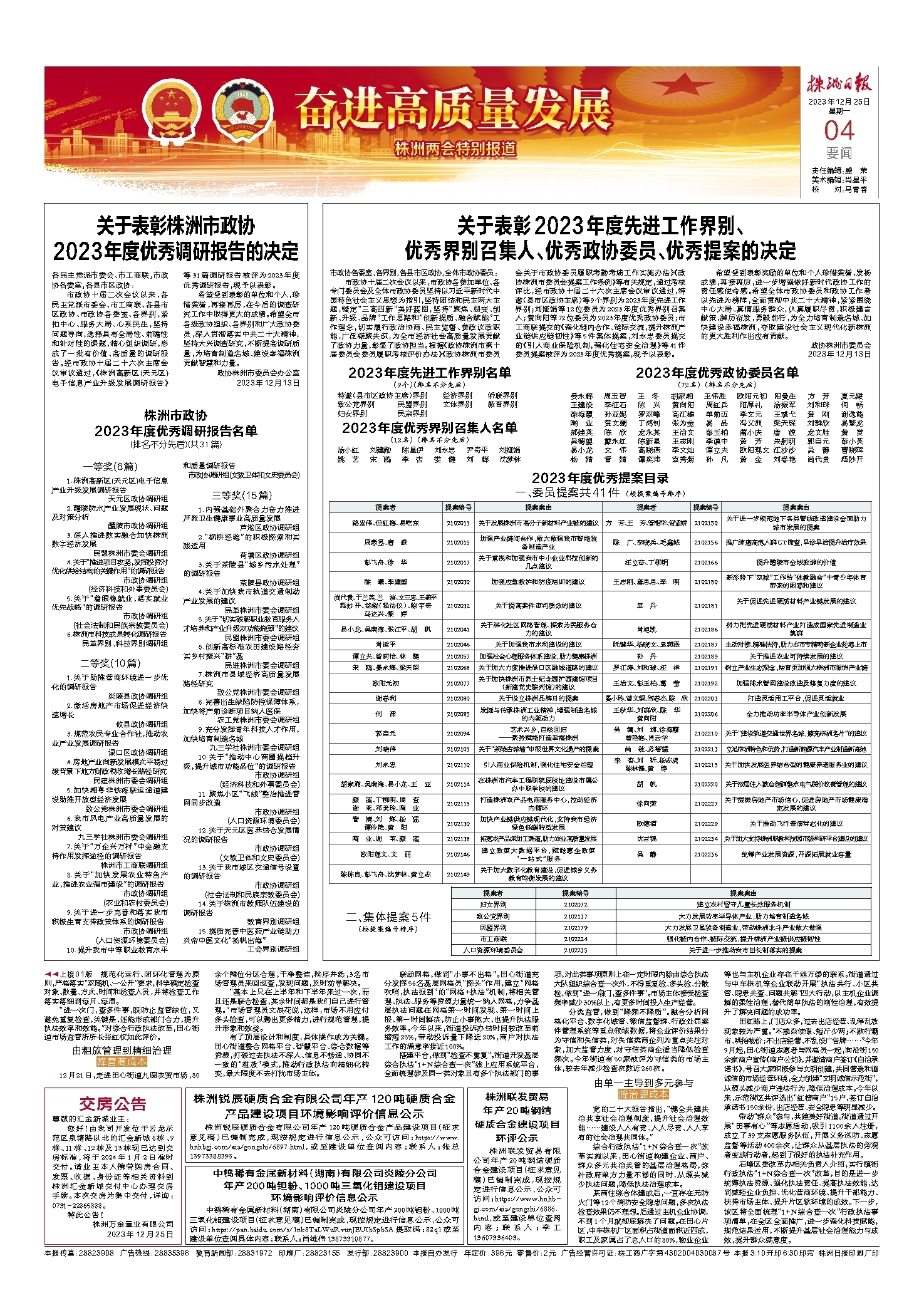 关于表彰株洲市政协 2023年度优秀调研报告的决定