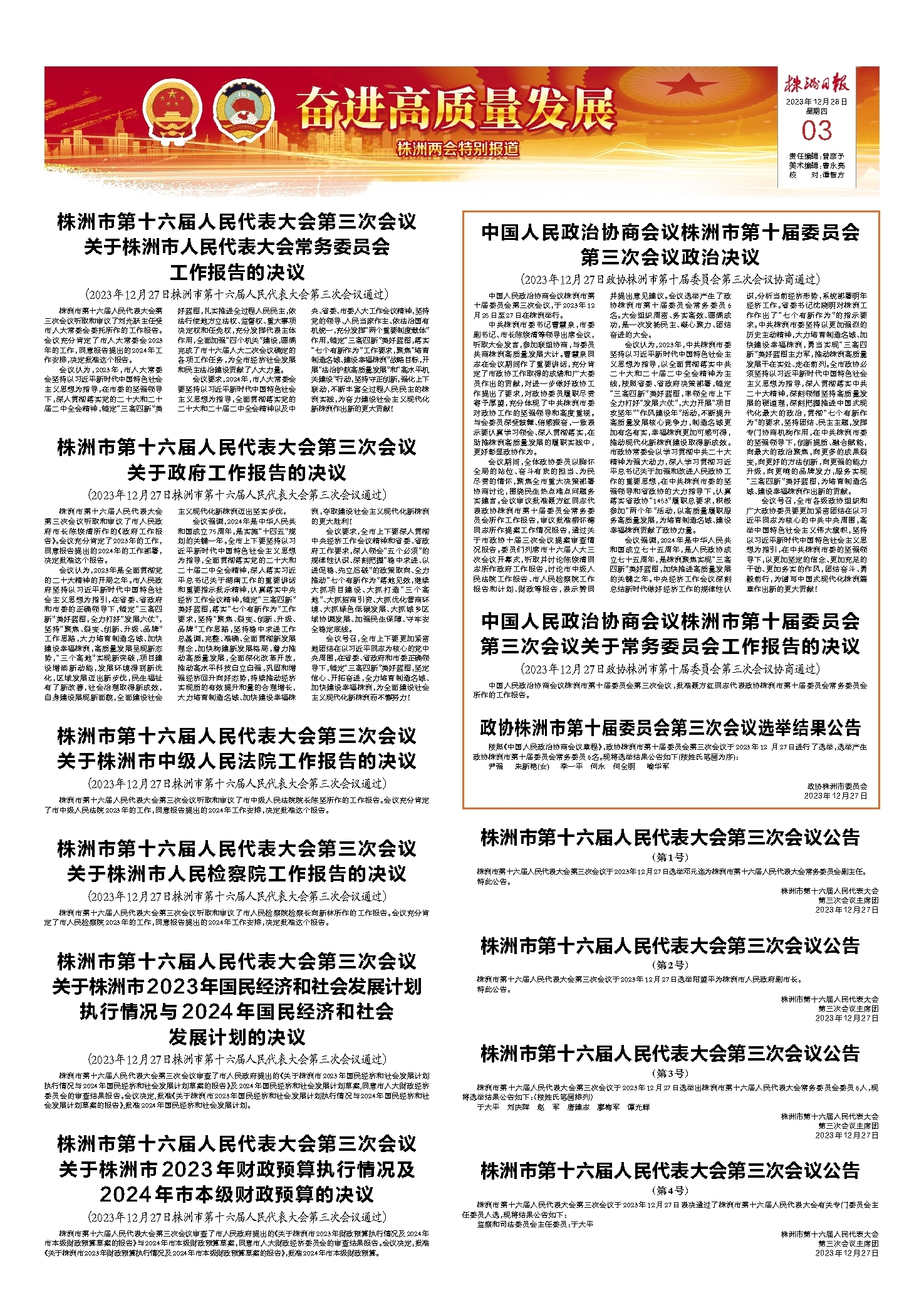 2023年12月28日《株洲日报》