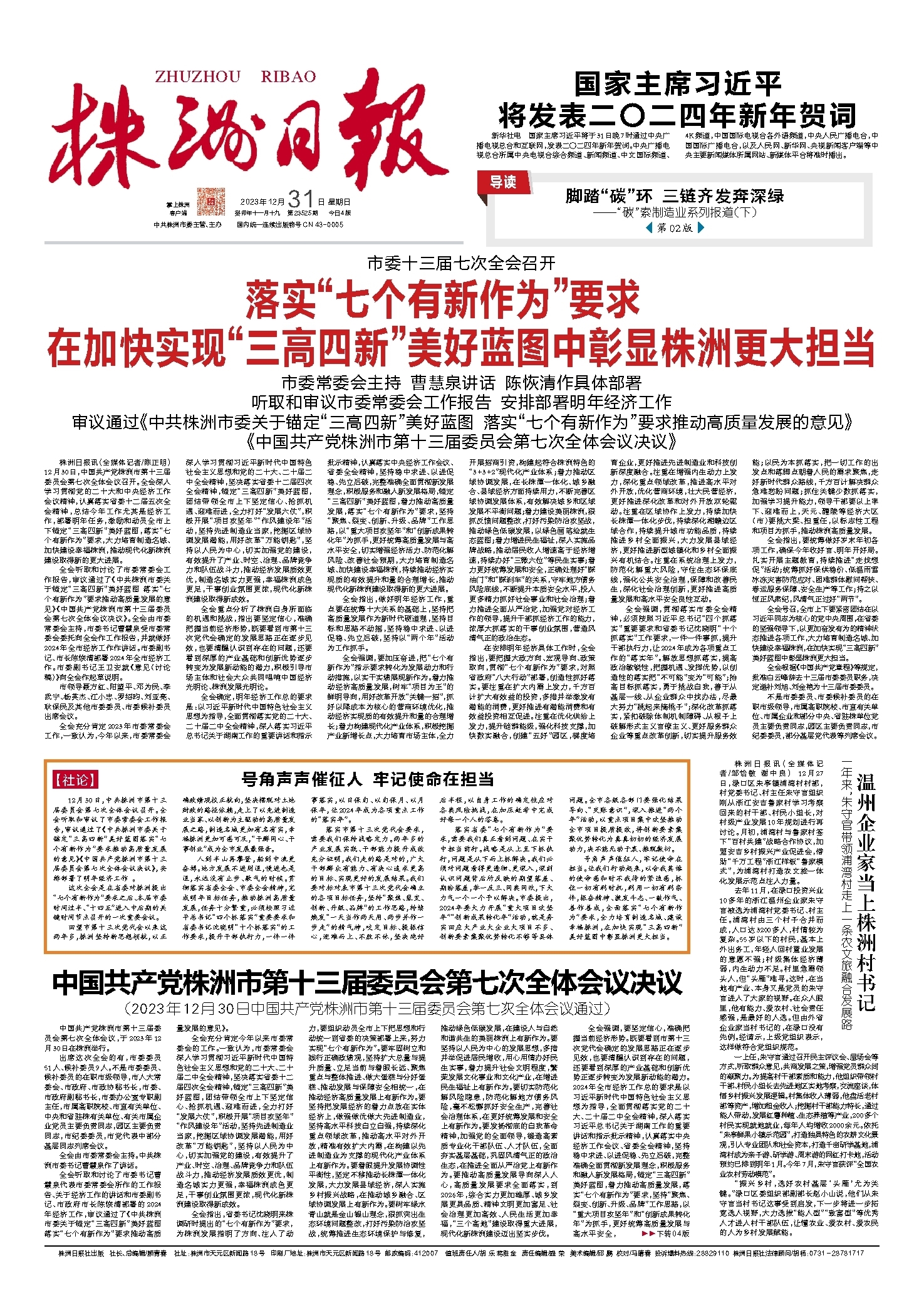 中国共产党株洲市第十三届委员会第七次全体会议决议