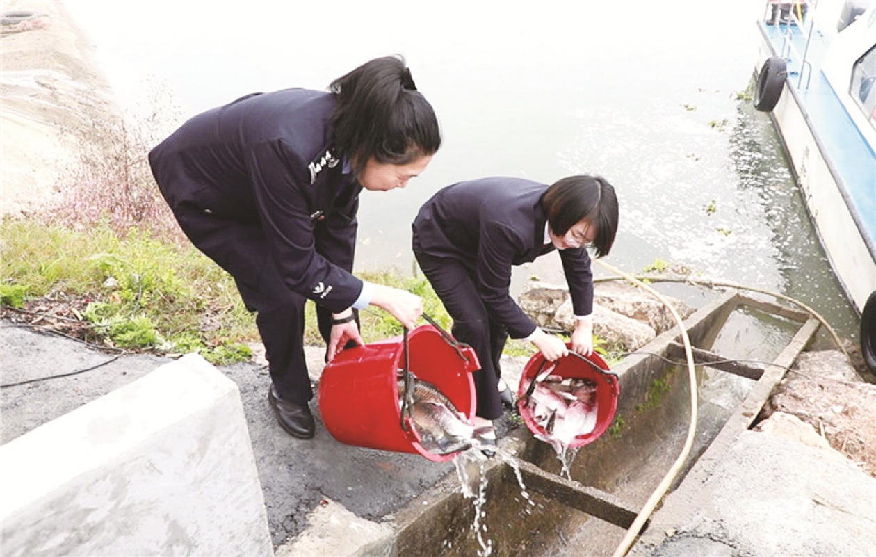 11月28日,在湘江渌口区龙船镇段,渌口区人民法院、人民检察院、农业农村局联合开展增殖放流生态修复执行行动,由被执行人出资购买的34000尾鲢鱼、鳙鱼苗被投放到湘江中。
