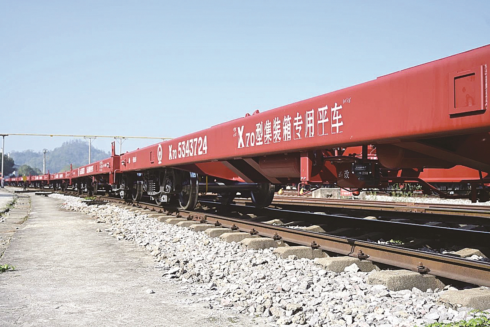 中车株辆公司生产的X70型集装箱专用平车。 企业供图