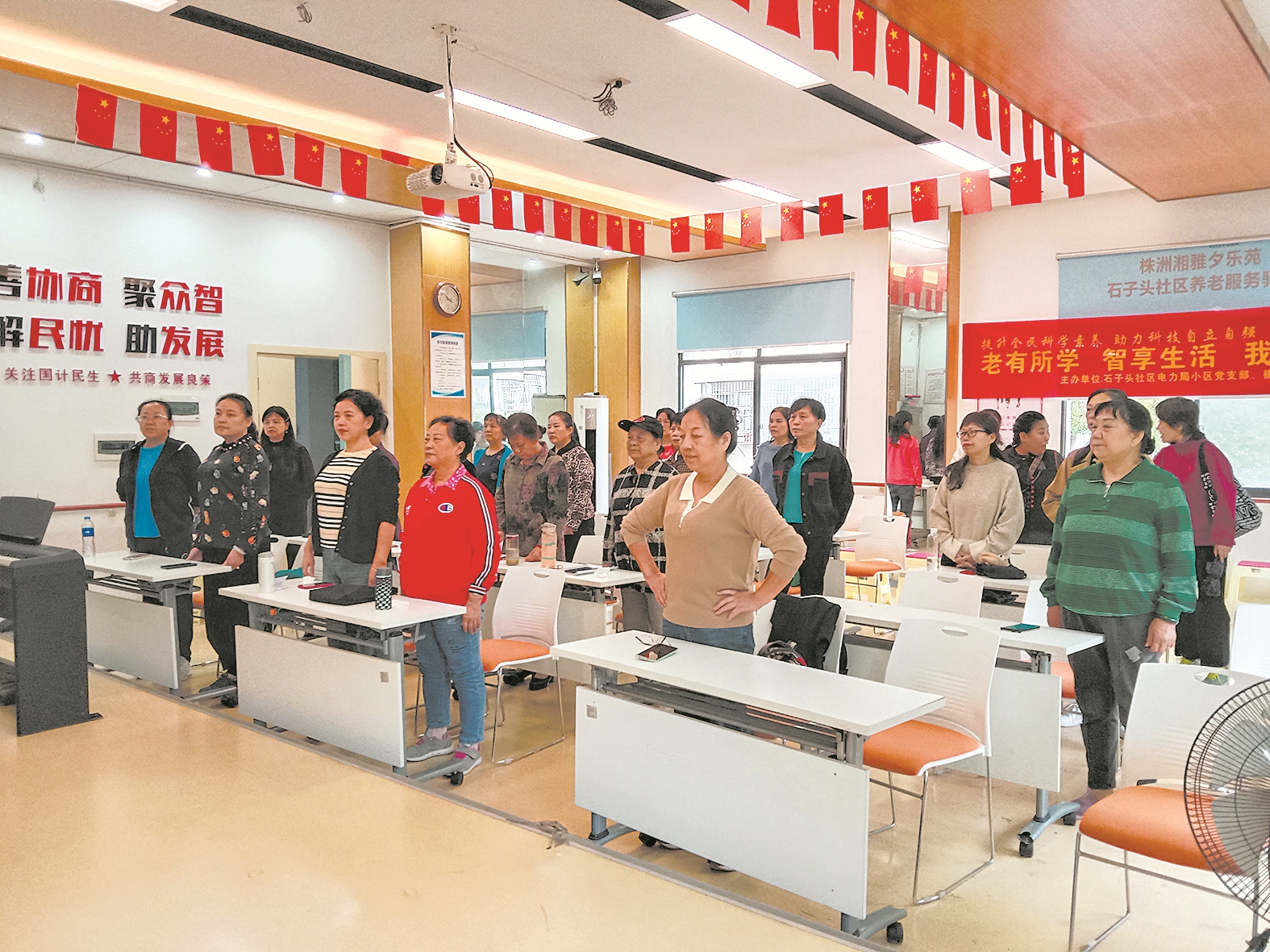 “课堂就在家门口,非常方便。既能学习,又能和大家一块活动,太好了。”家住电力小区的72岁陈娭毑高兴地说道。