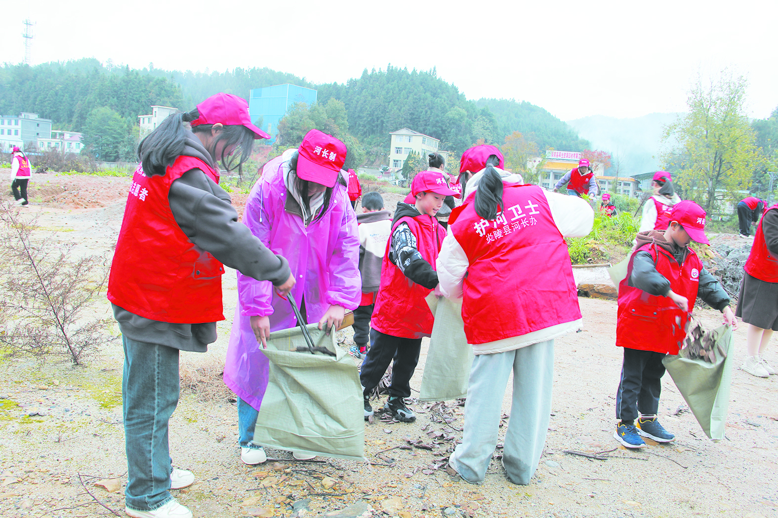 炎陵县河小青志愿者来到炎陵县霞阳镇草坪河畔,开展“‘河’我一起,保护母亲河”净滩行动。 株洲日报通讯员/周新文 林开利 摄