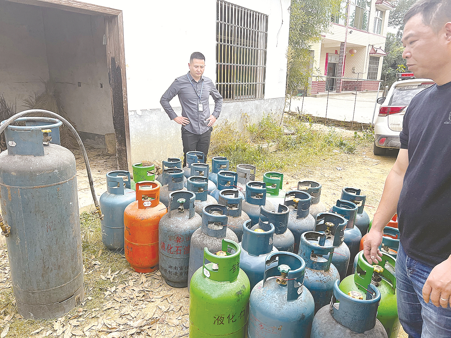 2023年9月26日,天元区燃气专班联合群丰镇政府在对群丰镇进行燃气安全检查时发现,合花村包某在株雷路边一集装箱内非法存储、倒装燃气瓶19只,其中YSP-50液化石油气钢瓶6只(重瓶5只,空瓶1只)、YSP-15液化石油气钢瓶13只(重瓶9只,空瓶4只)。