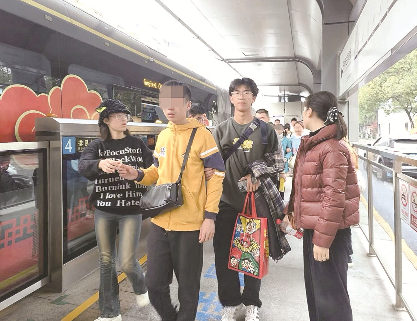 12月10日,市同心社会工作服务中心社工携手湖南工业大学的大学生志愿者,陪同9名心智障碍青年体验乘坐公交车、逛公园、识别交通标志标识。