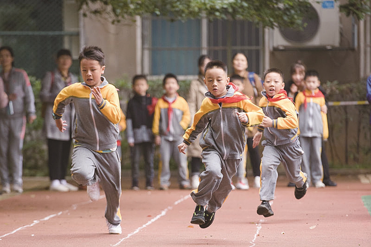 学校田径运动上,学生奋力奔跑。通讯员供图
