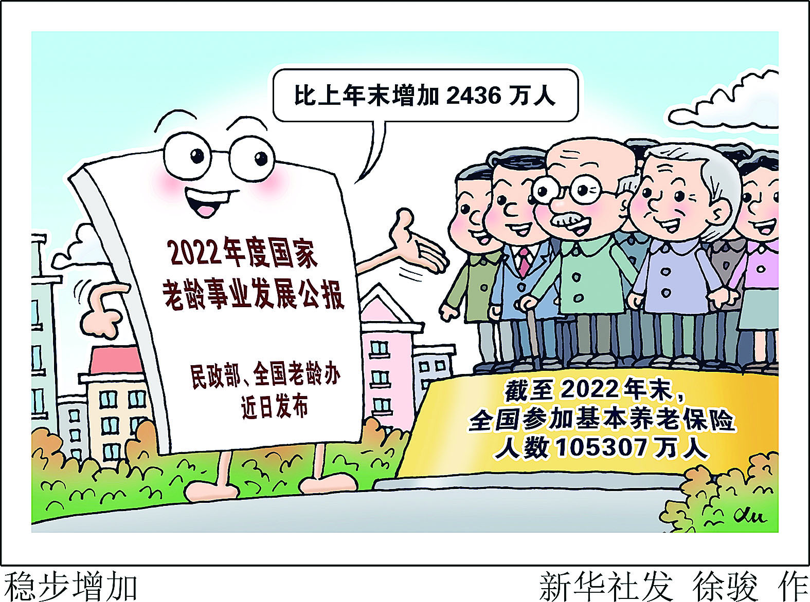 新华社北京12月14日电 记者14日从民政部获悉,民政部、全国老龄办近日发布《2022年度国家老龄事业发展公报》。公报显示,截至2022年末,全国参加基本养老保险人数105307万人,比上年末增加2436万人。