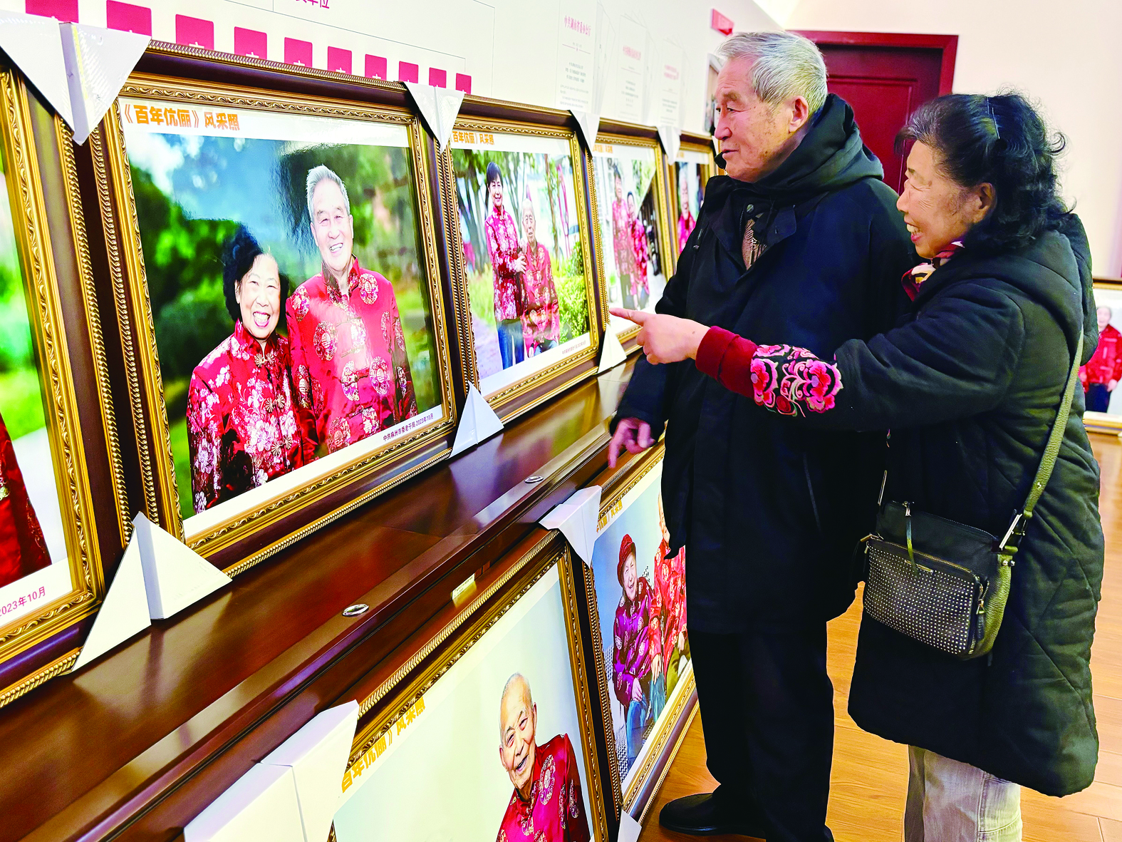 12月14日,市委老干部局在株洲市夕阳红艺术文化中心举行“我为老同志办实事”活动,为9对离退休老干部夫妻赠送“百年伉俪风采照”。图为市中心医院离休干部马霖与老伴陈惠玲开心欣赏自己的靓装合影。