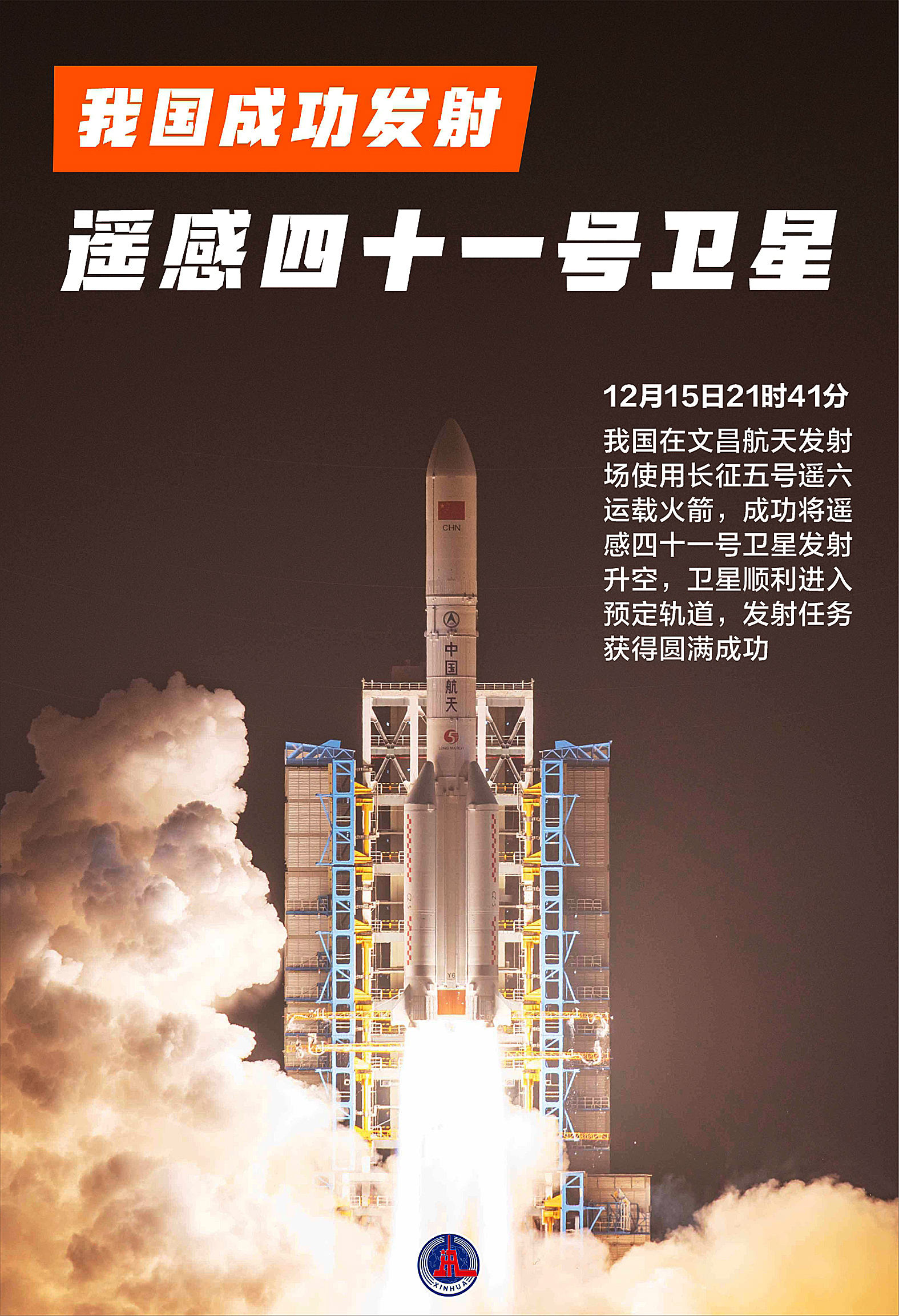据新华社海南文昌12月15日电 时隔3年,长征五号运载火箭再次披挂上阵。12月15日晚间,我国在文昌航天发射场使用长征五号遥六运载火箭,成功将遥感四十一号卫星发射升空,卫星顺利进入预定轨道,发射任务获得圆满成功。本发火箭首次采用18.5米的整流罩,使我国现役运载火箭突破新的高度。