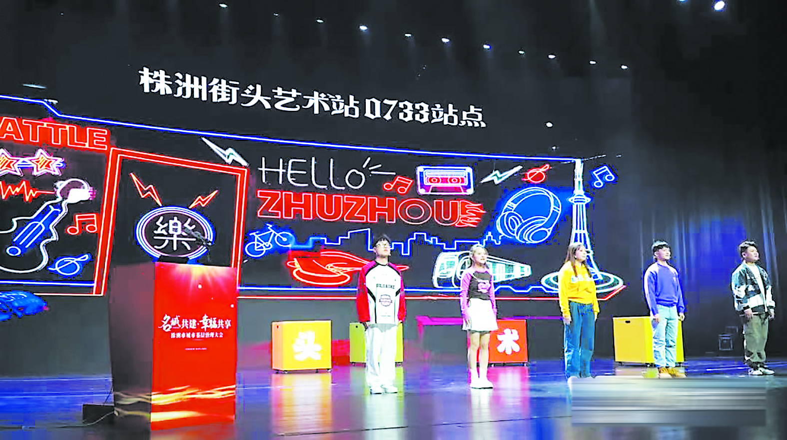 株洲市城市基层治理大会,发布了30个党建引领基层治理创新案例。图为案例之一的“街头艺术站”表演现场。 通讯员供图