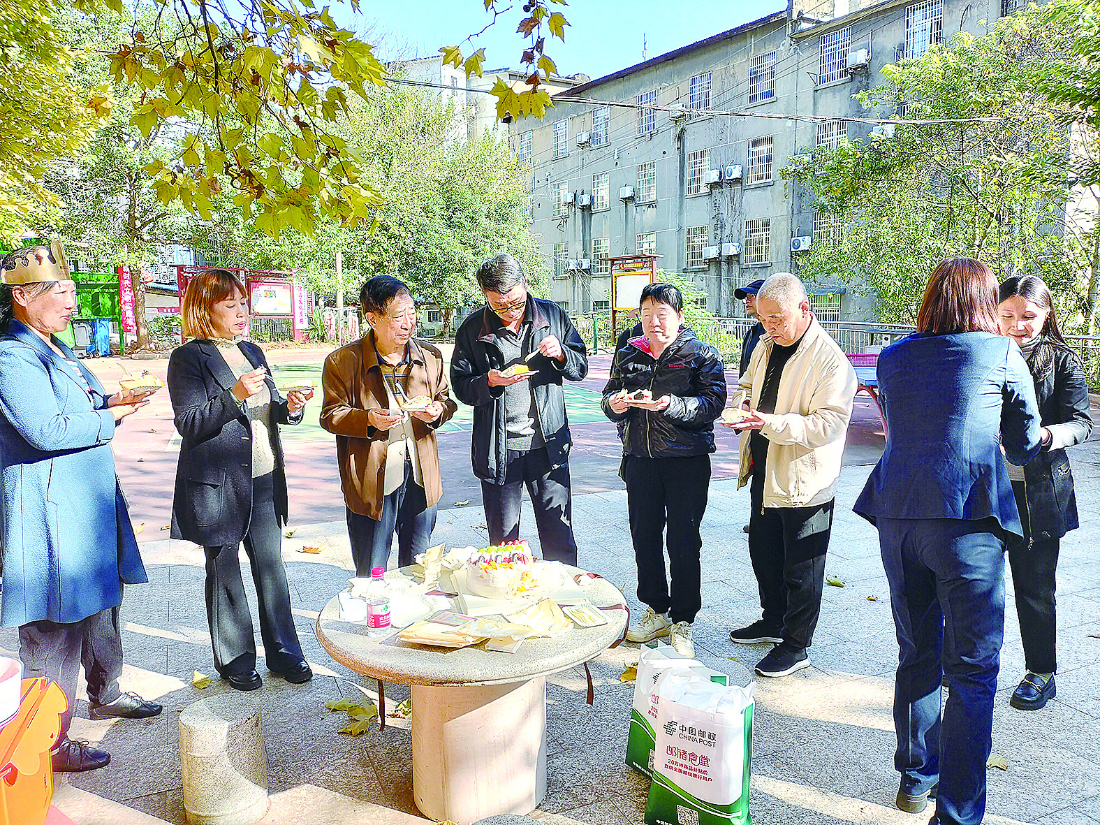 万泥塘社区党员集体庆生,一起吃蛋糕。 记者/杨如 摄