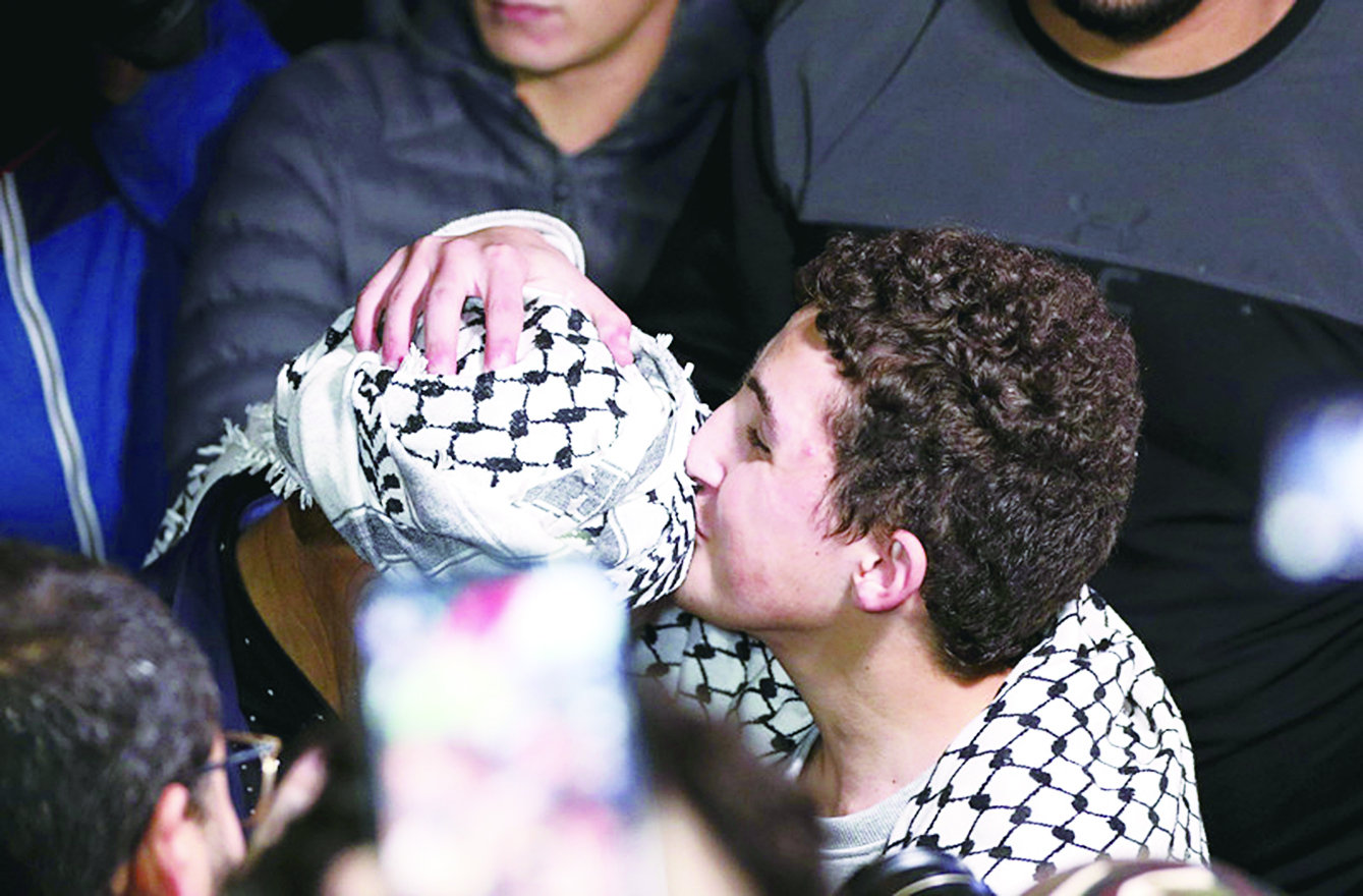 从以色列监狱获释的巴勒斯坦人与亲朋团聚。 资料图