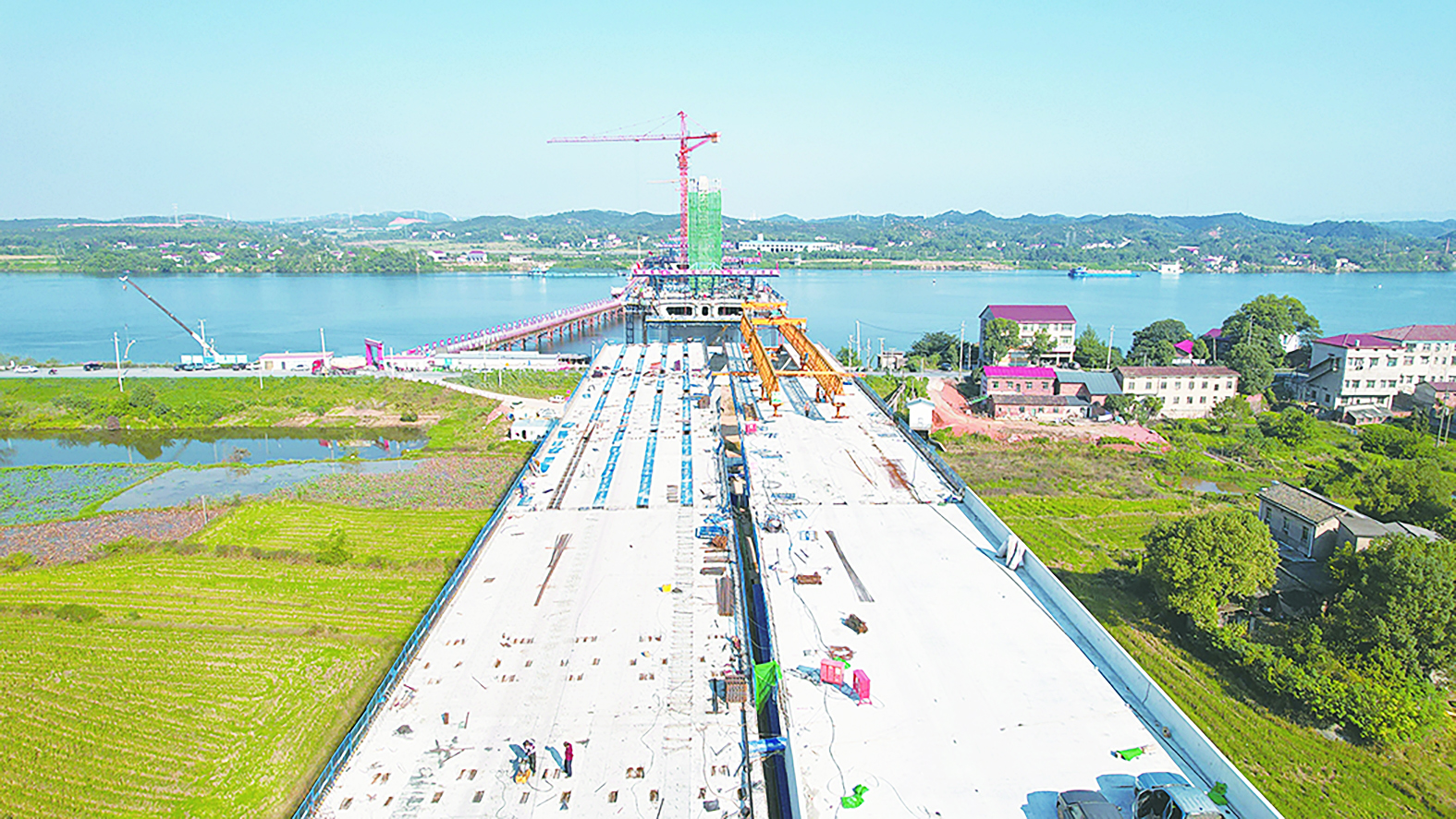 ▼醴娄高速株洲湘江特大桥引桥已架设完成。通讯员/郭慈珍 供图