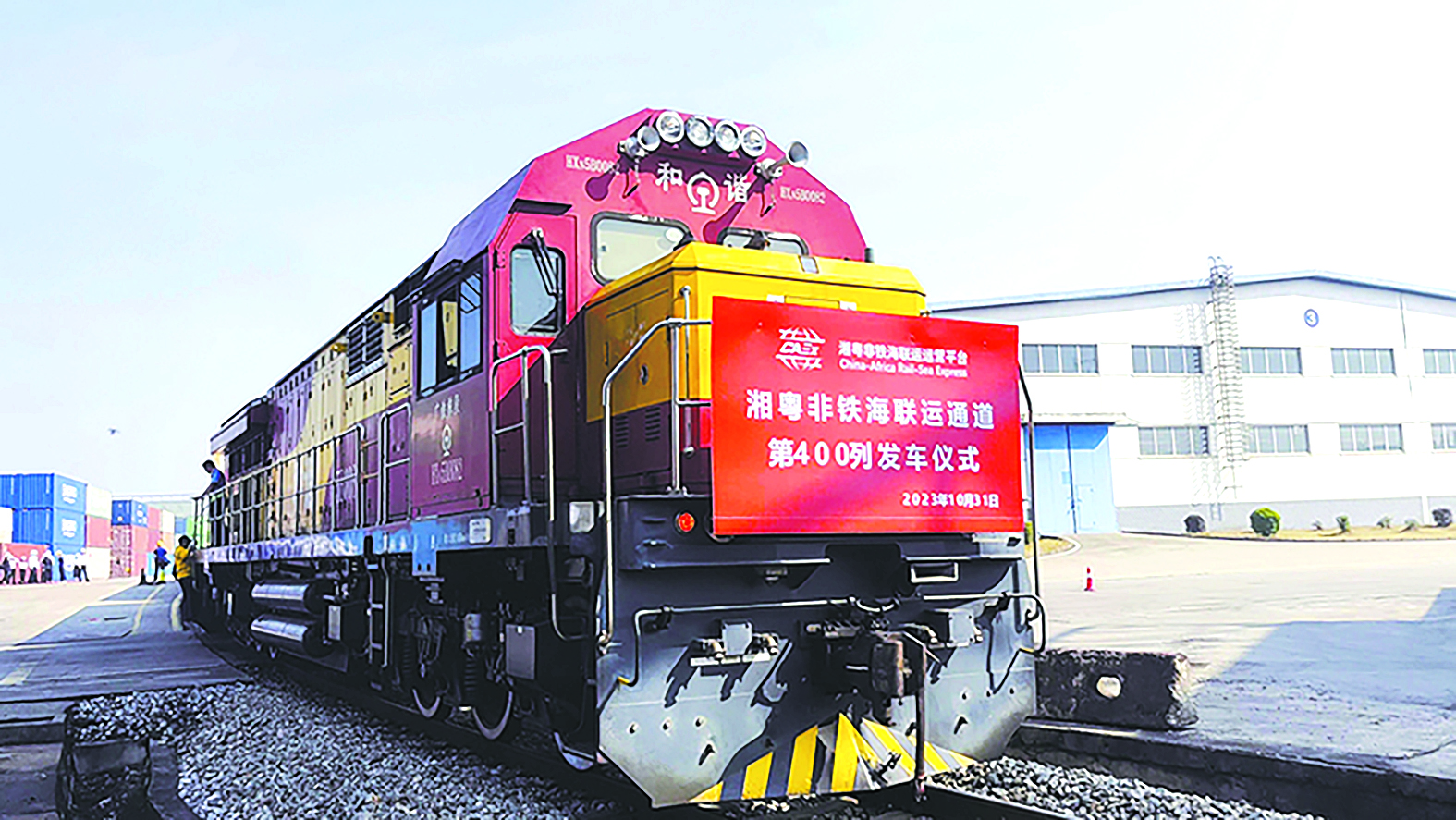 ▲湘粤非铁海联运通道第400列班列发车。 记者/吴楚 摄