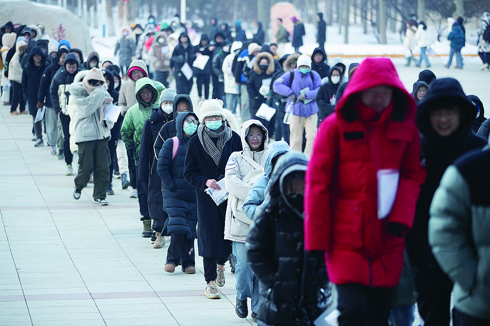 12月23日,2024年全国硕士研究生招生考试开考。当日,在黑龙江省哈尔滨市,考生在哈尔滨理工大学考点排队进入考场。新华社记者 张涛 摄