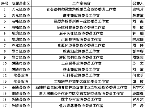各县市区先进政协委员工作室名单