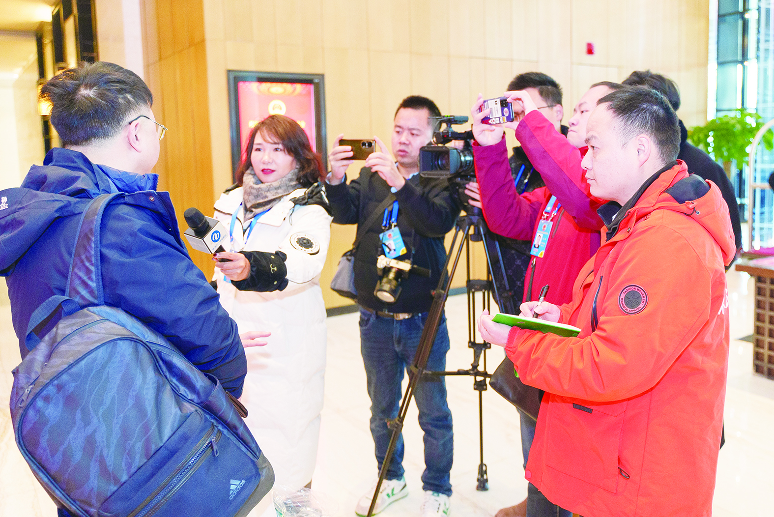 媒体集中采访前来报到的市人大代表。 记者/徐健浩 摄