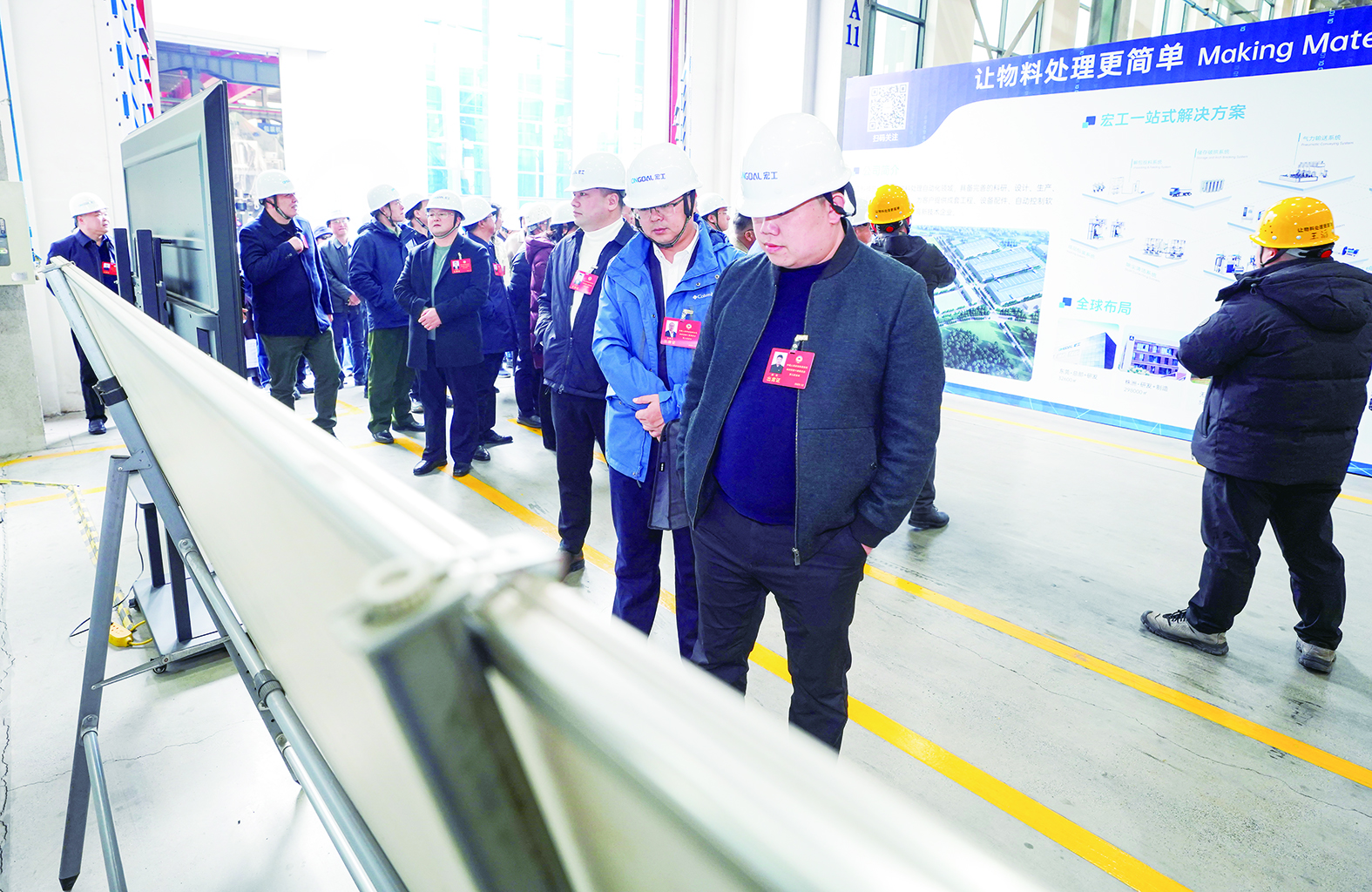 市政协委员视察宏工智能项目。 记者/刘震 摄