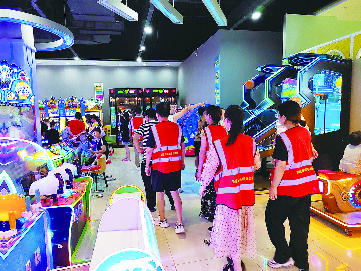 茶陵“夜鹰”巡防队在游戏厅巡查。 通讯员 供图