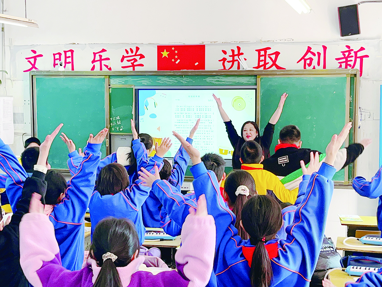 有细心的家长发现,在五年级的音乐课堂里,带着同学们手舞足蹈的正是校长周英斌。师生互动频繁,打造了快乐的学习氛围,达到高效课堂教学效果;而在另一间教室里,学校党支部副书记刘水平也带着二年级的同学们来了一场德育课,充分调动学生学习兴趣,实现了知情意行的有机结合。