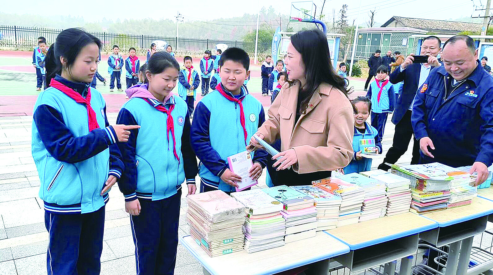 近日,天元区雷打石镇先锋村党委、株洲公交发展股份有限公司第四党支部联合开展支部共建活动,为泉丰小学捐赠了一批课外阅读书籍和学习用品。捐赠现场,孩子们接过一套套崭新的书籍和文具,脸上露出灿烂的笑容,学生代表为党员们送上亲手折好的千纸鹤、贺卡,并系上了鲜艳的红领巾,以表感激之情。