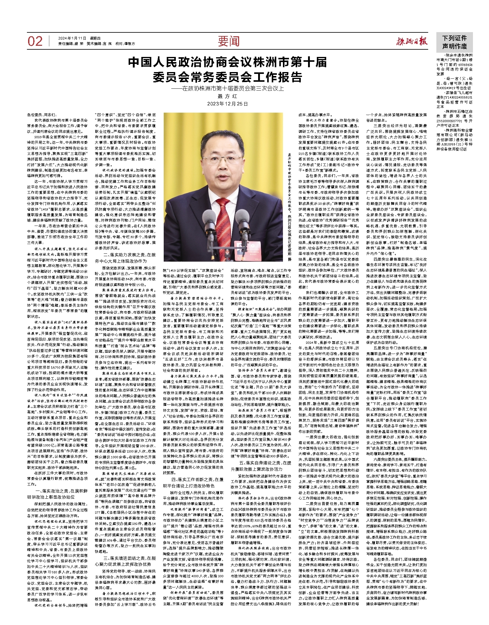 中国人民政治协商会议株洲市第十届 委员会常务委员会工作报告
