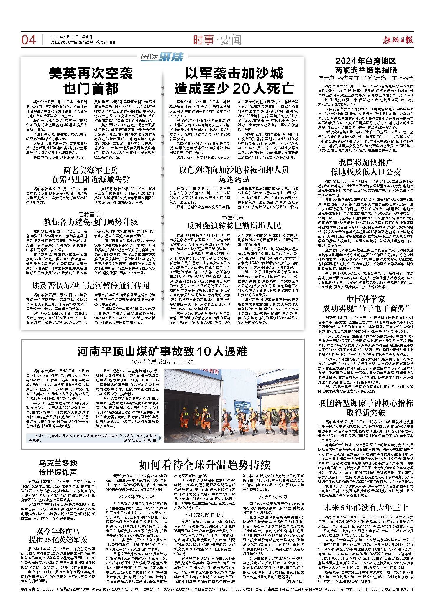 2024年01月14日《株洲日报》