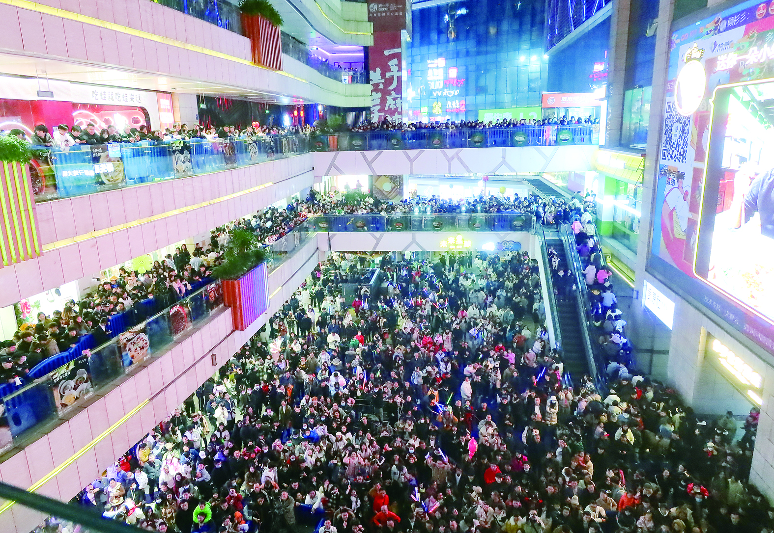 元旦假期,市民喜迎新的一年,中心广场等地人气很旺。