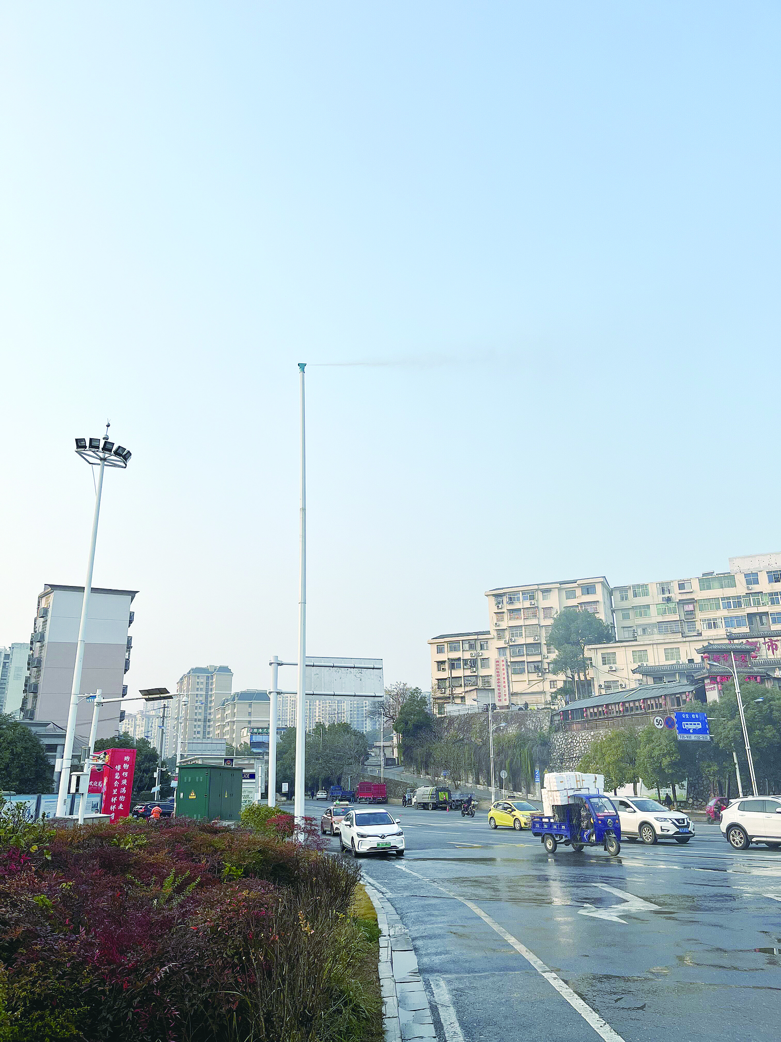 经核实,这是一套道路喷雾除霾设备,由主机系统控制,可完成无人值守自动化喷雾作业。根据相关资料介绍,该设备有除霾除尘净化空气作用,还能起到喷雾降温和城市美化的作用。 株洲日报全媒体记者/刘平 摄