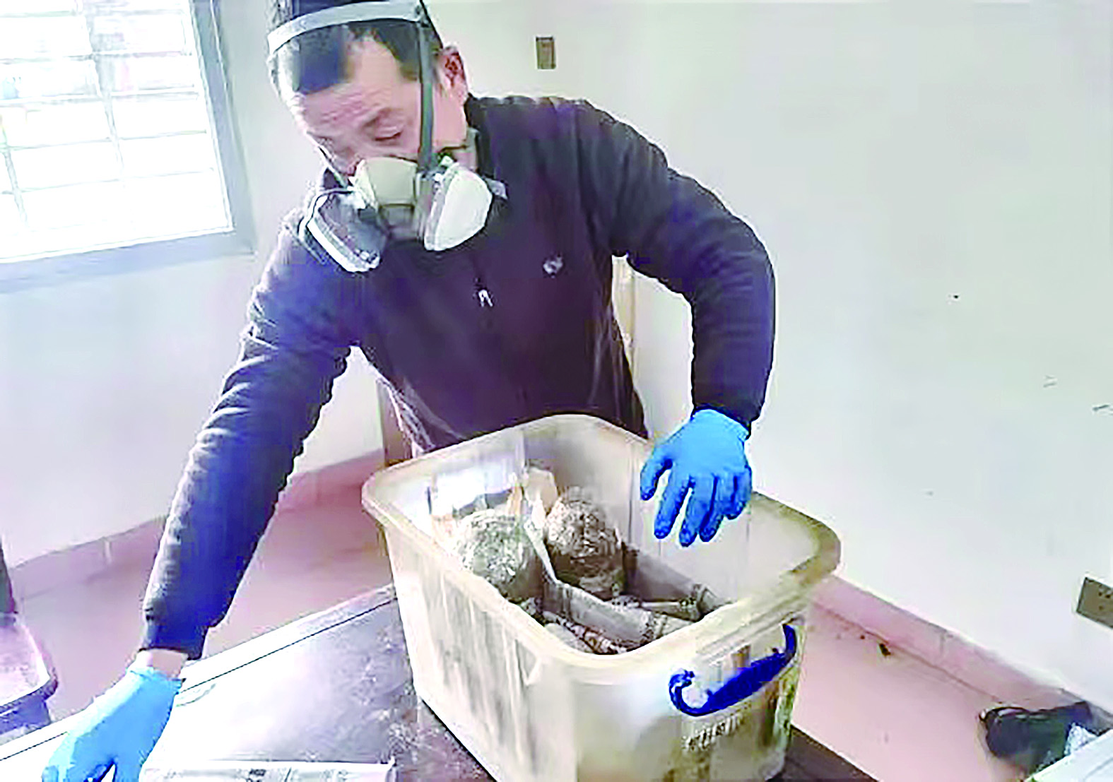 工作人员清理遗留下的危险化学品。 通讯员供图