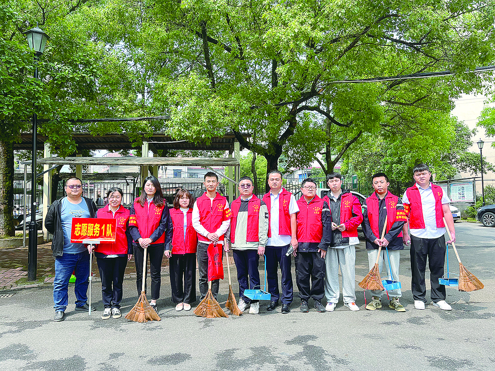 志愿者在火炬小区清扫卫生。 通讯员/供图