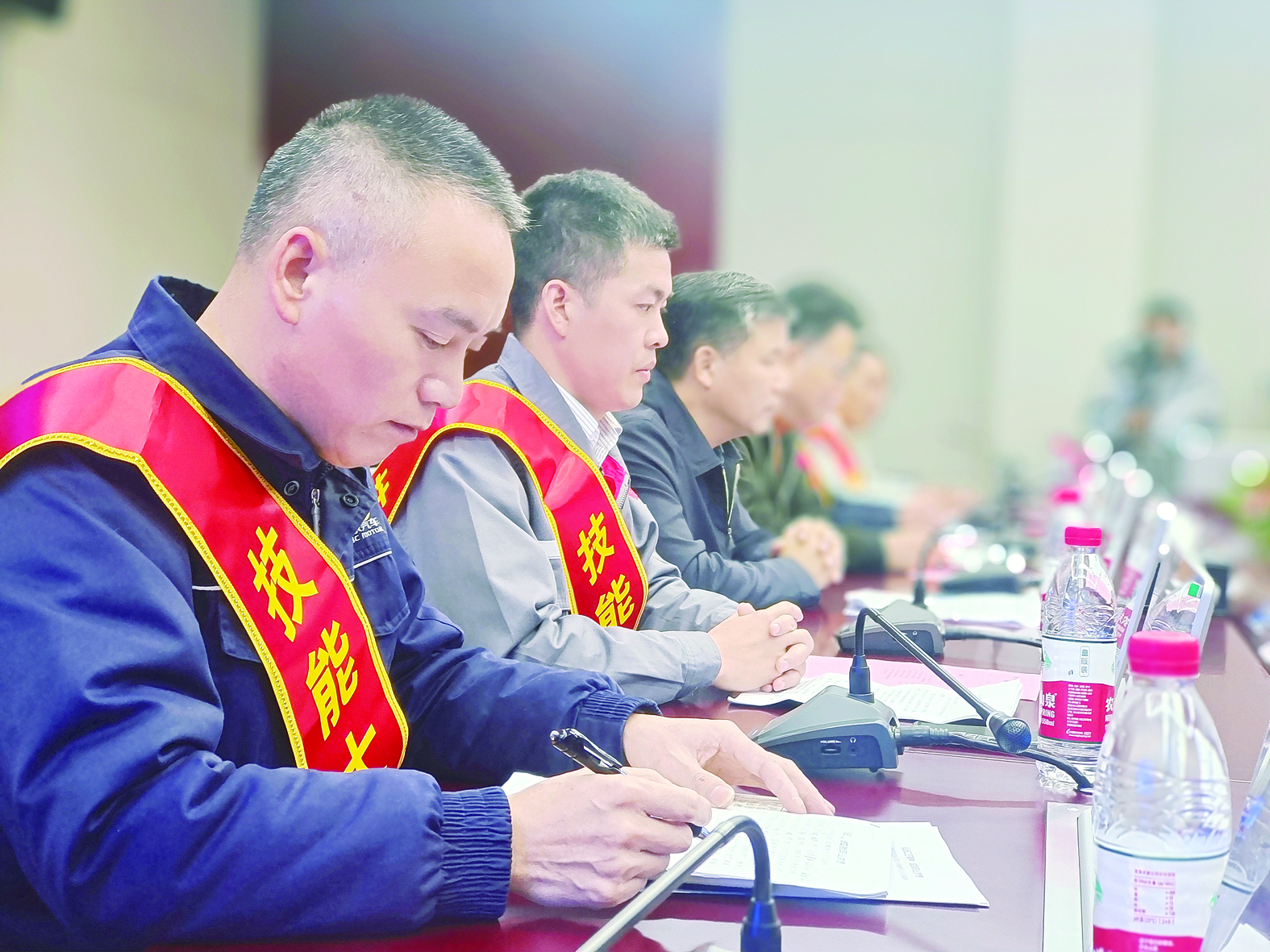 ▶市人社局组织“技能专家”进企业宣讲,激励产业工人走技能成才、技能报国之路。 记者/何春林 摄