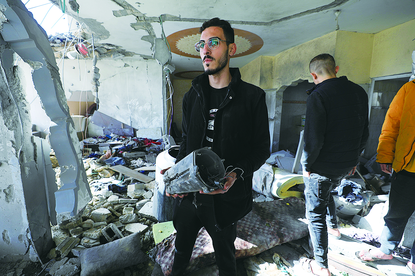 1月10日,在加沙地带南部城市拉法,巴勒斯坦人查看被以军空袭后的住宅。 新华社发(亚西尔·库迪 摄)