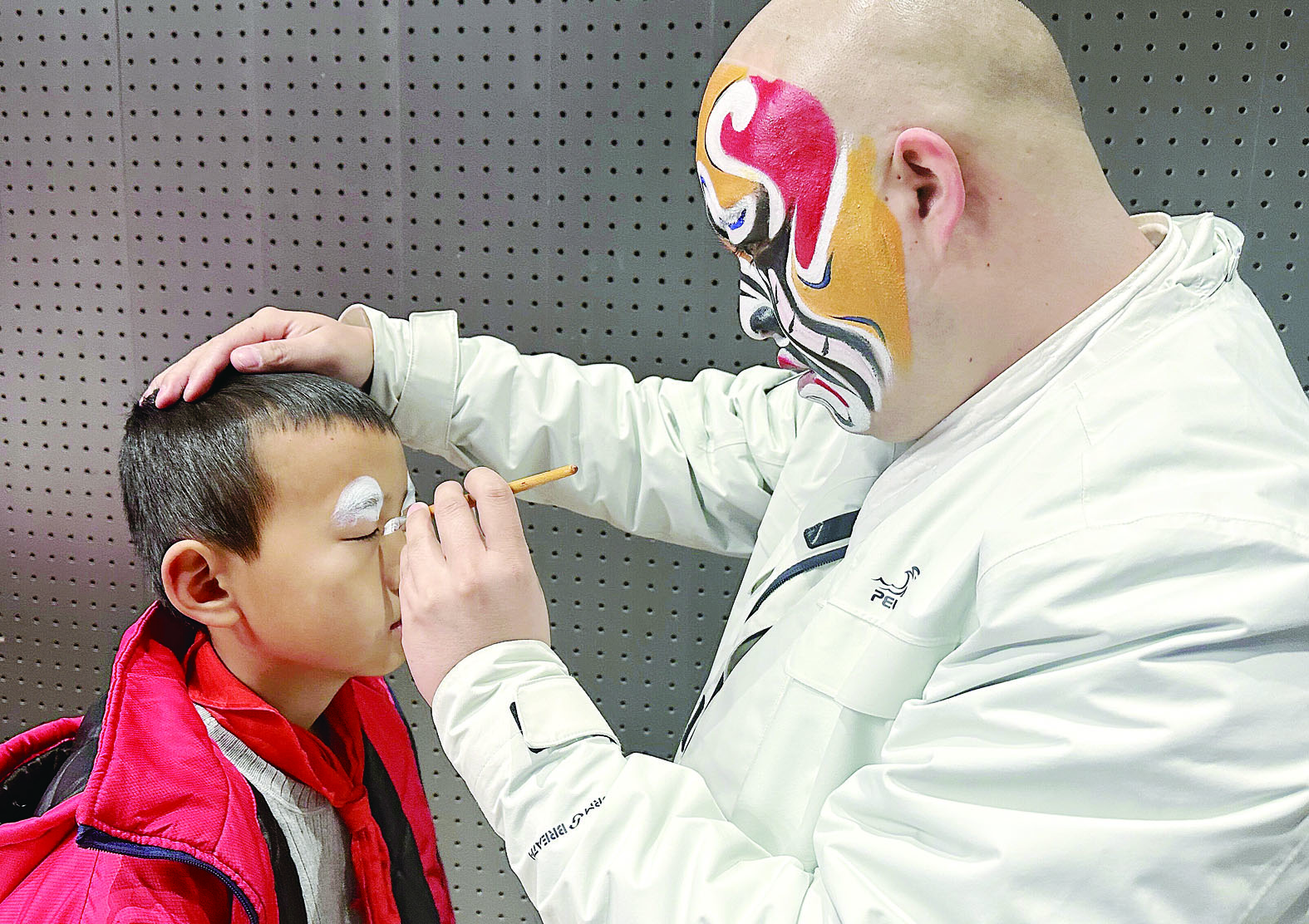 枫溪学校小学部东校区的张益榕就读五年级,在家人的耳润目染中爱上了京剧,他还是学校京剧社团的成员。在演出活动中,他积极参与互动活动,并由戏曲老师为他勾画了“关羽”的脸谱。“亲身体验,更能深刻感受到国粹的魅力。”张益榕说。