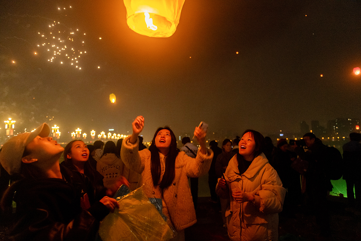 绚丽的礼花绽放,照亮了蓝色的夜空,天空中飘满了满载希望的孔明灯。湘江两岸的烟花加特林在江上搭起了彩虹桥,一江碧水闪烁着迷人的光芒,美艳不可方物。置身于这样欢乐的海洋,顿时觉得人间值得!
