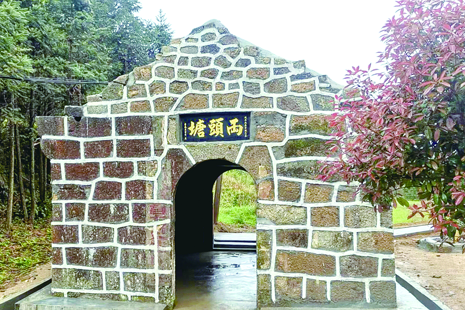 咸丰九年(1859),岁次己未,乡人捐资修建风雨亭并立碑“两头塘”。据此推算,“两头塘”之谓已有163年历史。亭子位于山谷之间,昔日两端山塘终年水流不竭,浸润良田沃土,造福代代乡民。驻足片刻,便有山风徐来,云雾缭绕,近似人间仙境。